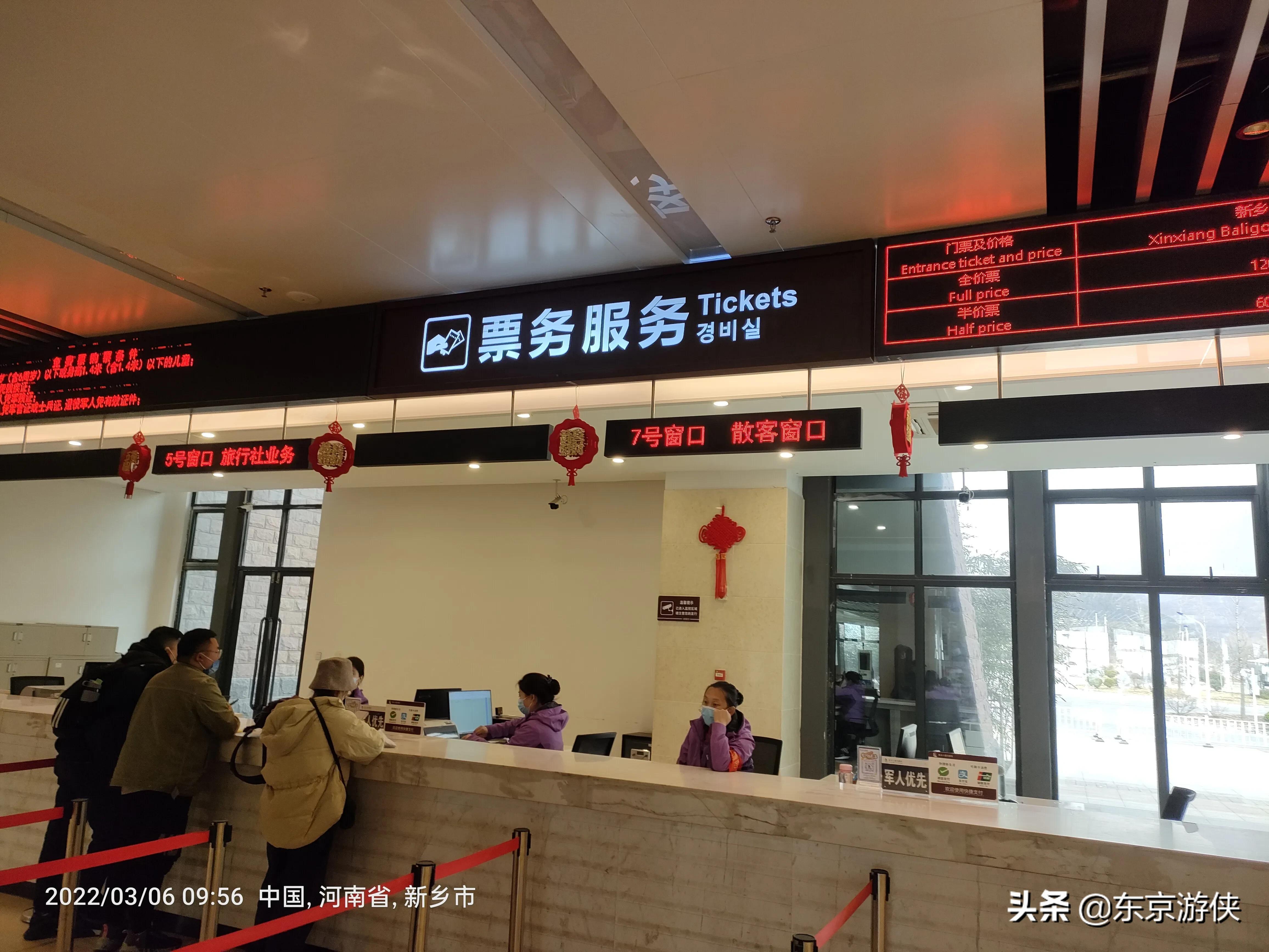 在河南文旅通APP上预约,不收门票。扫健康码进入景区服务大厅,在票务服务处扫微信购买40元的景区内的大巴公交,大门到景区还有10公里。自驾车不让进,必须购买往返40元的大巴公交车,这个实在是太坑人了。