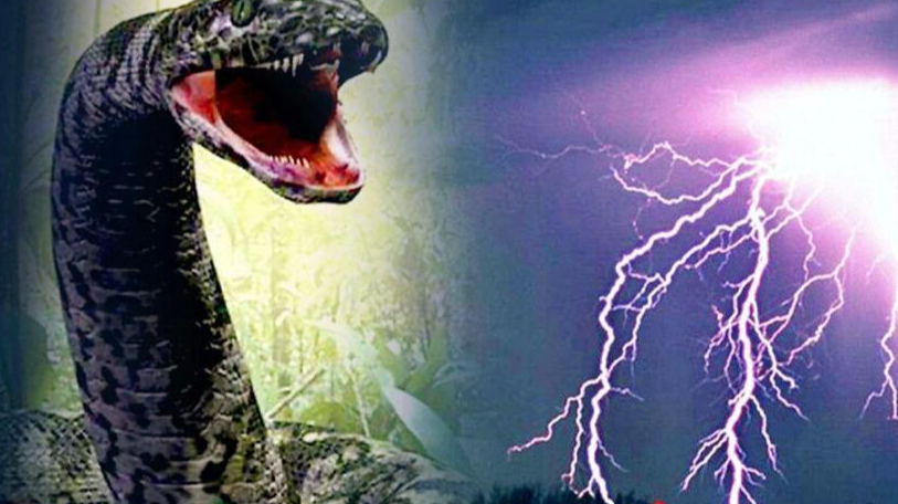 此时,巨蟒早已没了气息,巨大的蛇身从树枝上垂下。村民们看到此景纷纷说是修炼多年的巨蟒在渡劫,结果渡劫失败被天雷劈死了。