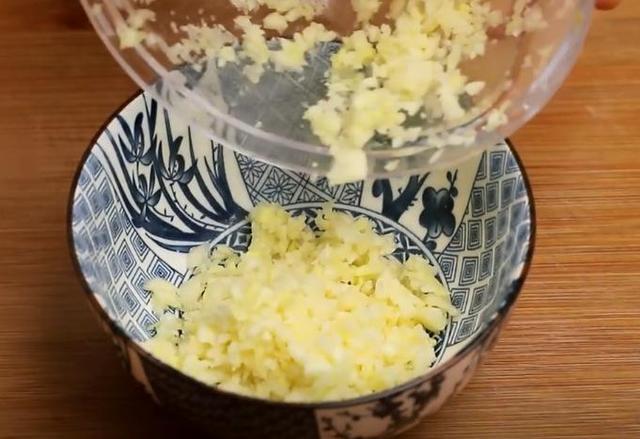 4.蒜和姜放入到拉蒜器,轻轻几下就拉成了姜蒜末备用。