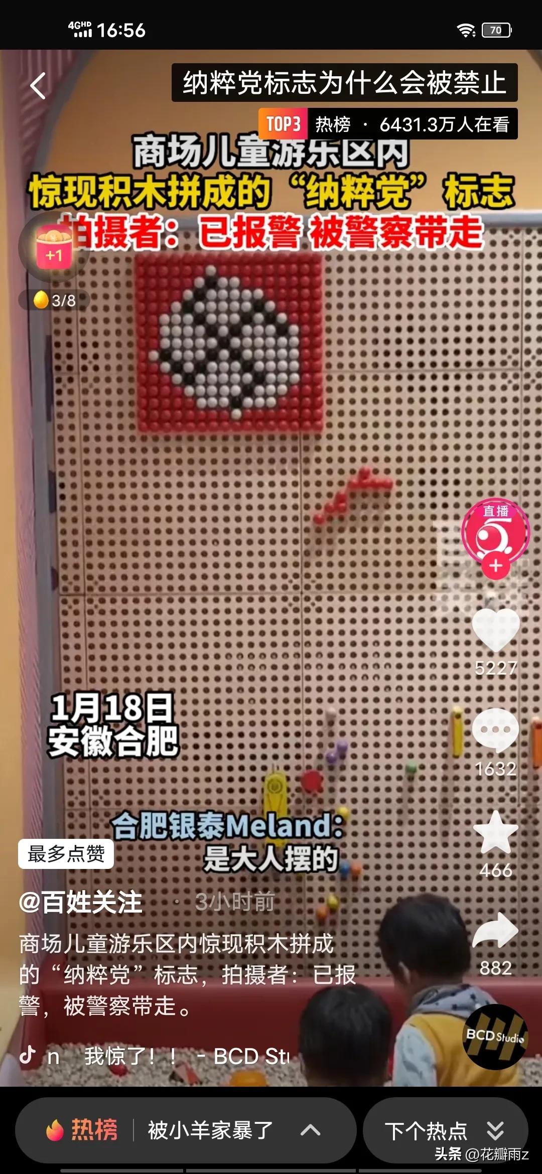 安徽合肥一商场儿童游乐区内,惊现积木拼成的“纳粹党”标志。