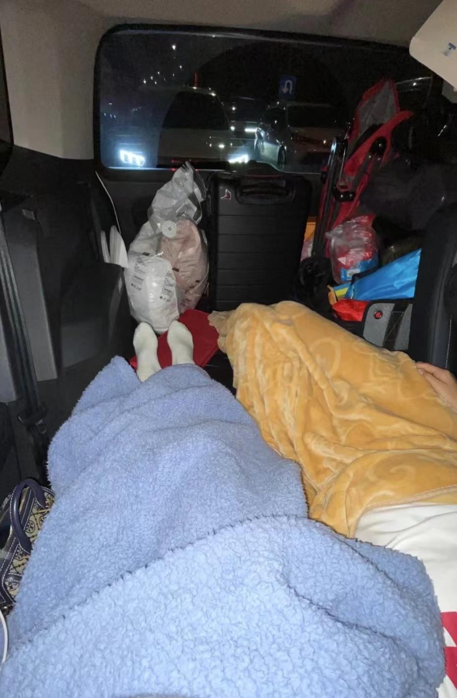 不能挪动,更不能登船,我们只能一直在自己的车上滞留,饿了就在车上吃点零食、速食;上厕所就去马路对面的水果摊,还要收费2元一场;还好行李箱里有预备的衣服、毯子,我们就把座椅放倒,在简易的车座上过了一夜。